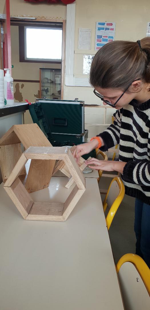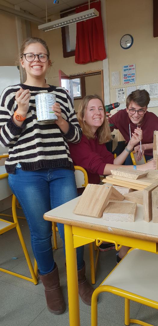 Une aide précieuse de la part des élèves du club pour la construction des hôtels à insectes dans le cadre du projet avec les secondes.