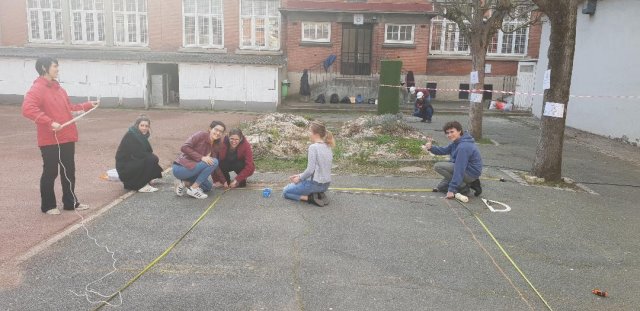Au milieu ou du moins le reste et de gauche à droite : Romain, Hamza, Louis et Madame Huynh (mathématiques)