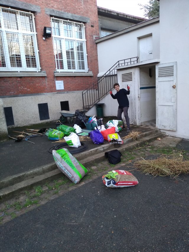 Une petite pause rangement est nécessaire quand on commence à avoir beaucoup de matériel pour le jardinage et les travaux au lycée.